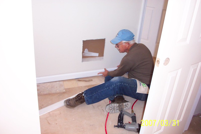 doing trim work on a Habitat house build.